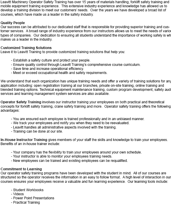 We offer several options to help educate your organization. Furthermore, we present you two possibilities for instruction. We can provide it on-site or at our place of business. Our aptitude to tailor our training methods to your equipment is what sets us apart from our competition.